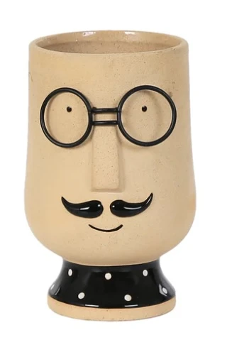 This is a unique house plant pot with a gentleman theme. Perfect for any house plant. Why not pot with something exciting to give the effect of hair?