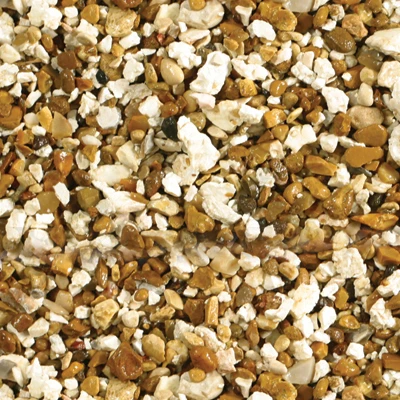 A traditional favourite, Gold Coast chippings are a hardwearing flint with a warm golden glow. This product is ideal for paths, driveways and as a top dressing for beds and planters. Gold Coast is also available in a smaller  size. This fish friendly product deepens in colour when wet, making it perfect for all kinds of water features too.