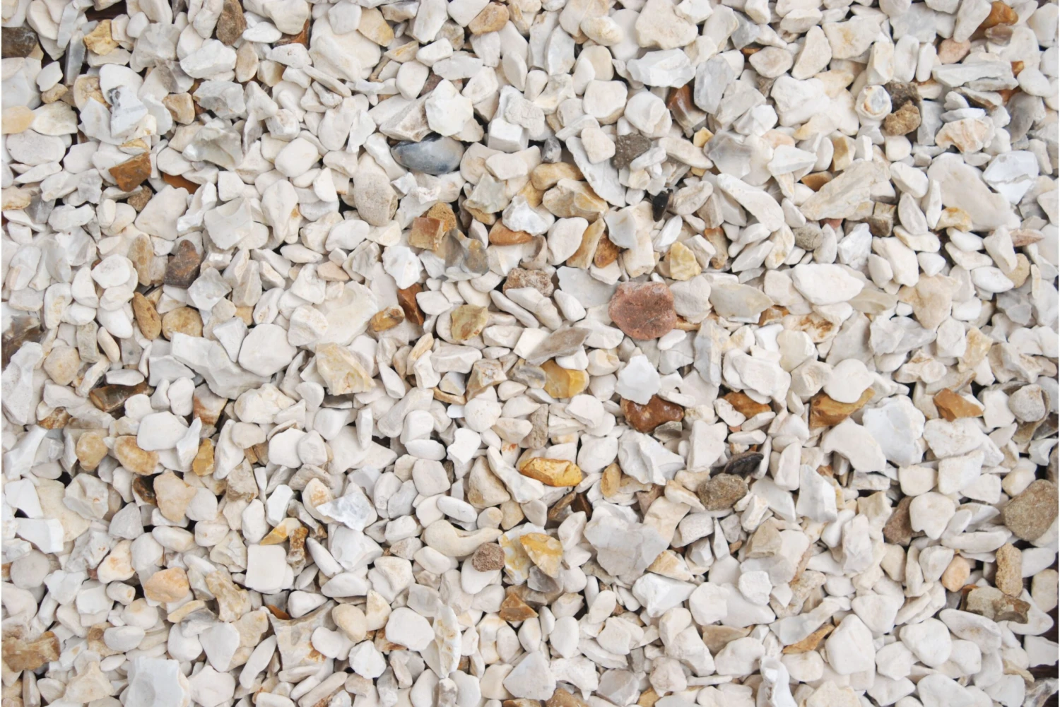 Cream grey and beige coloured irregular stone gravel and whole stone mix.
