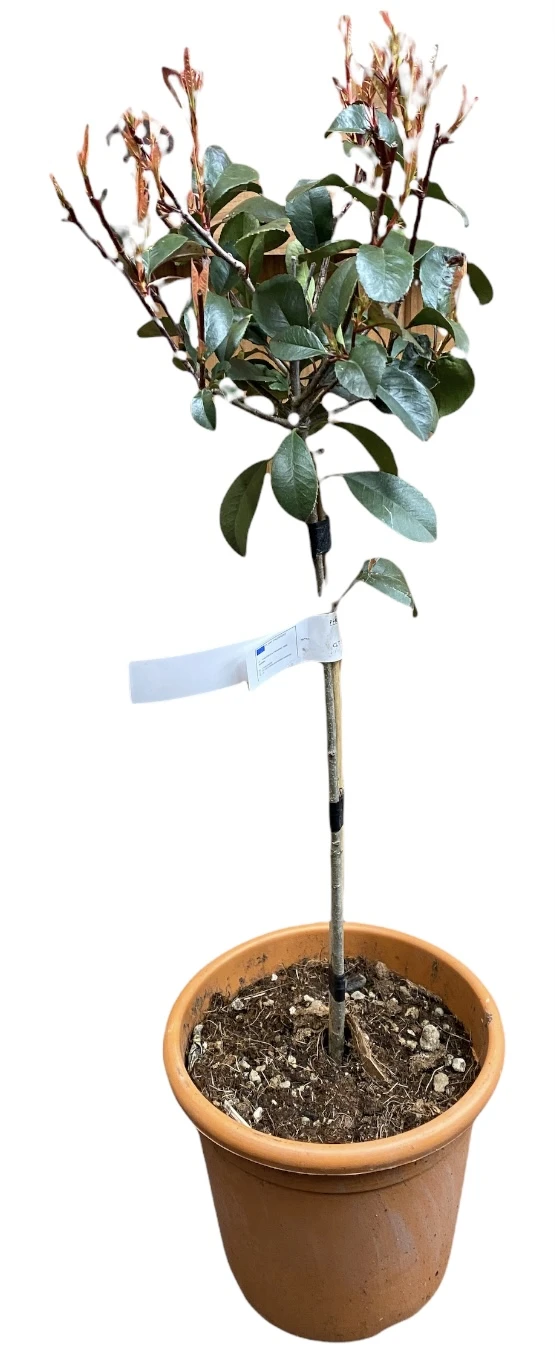 Photinia Red Robinโs name is derived from the Greek word photeinos meaning shiny, referring to its glossy showy leaves. If you are looking to make a statement in any area of landscaping, lollipop Photinia Red Robin is an excellent way to do so, not only bringing a different dimension, it adds a bright and rather unusual splash of colour. The added attraction to employing these shrubs when topiarised into an architectural shape is, being evergreen there is colour and interest over the winter months as well as throughout the summer, making it a very appealing addition to any garden, large or small.