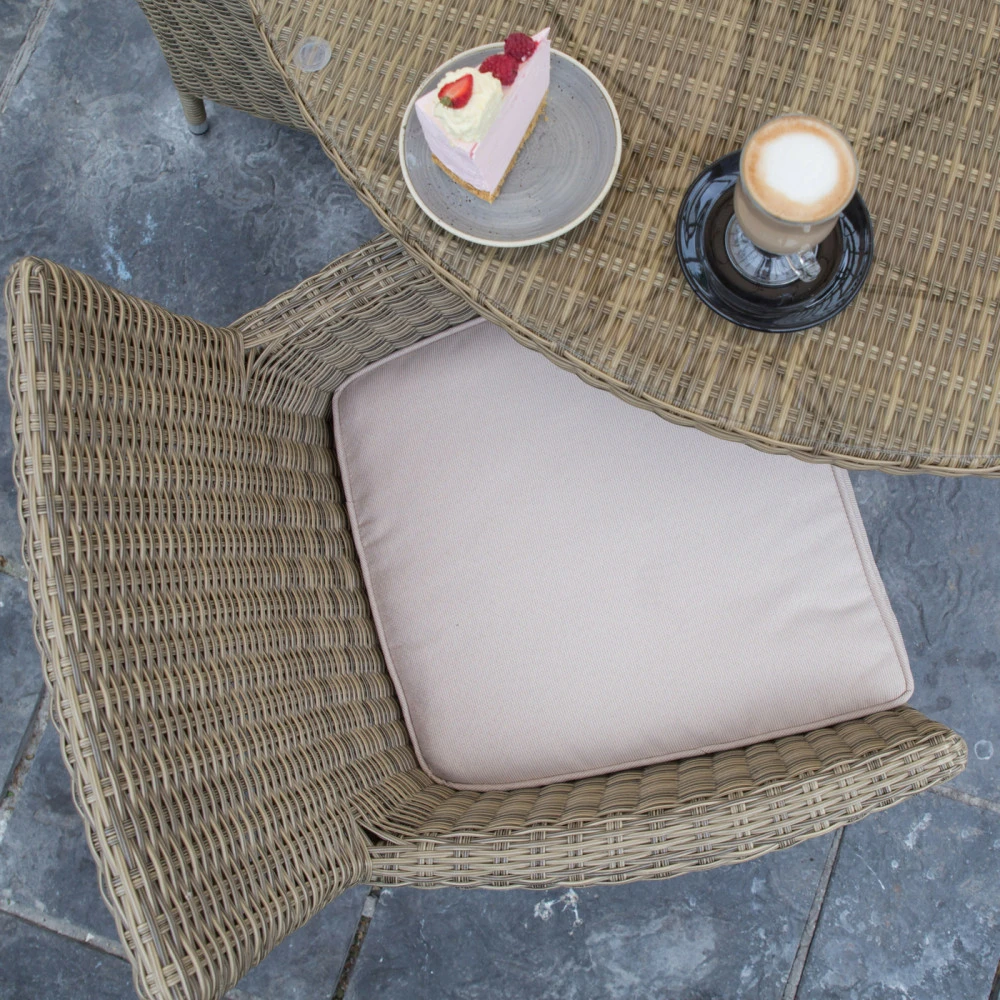 - Chairs: 4 armchairs. 5cm Biege seat pads included. Armchair Width: 60cm, Depth: 62cm, Height: 86cm.